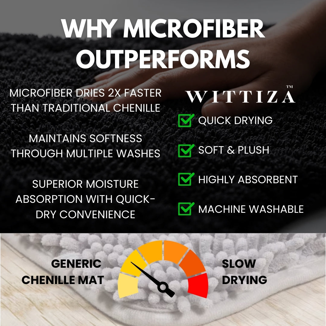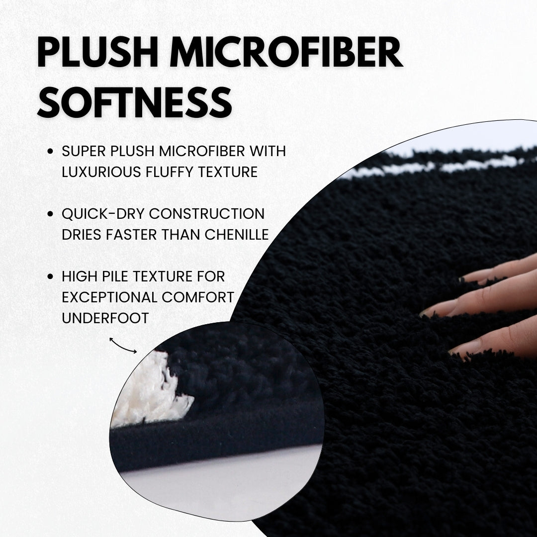 Super plush microfiber pile provides cloud-like softness underfoot after showers or baths. Quick-dry construction outperforms traditional chenille mats, keeping your rug fresh and ready faster while delivering exceptional cozy, fluffy texture.