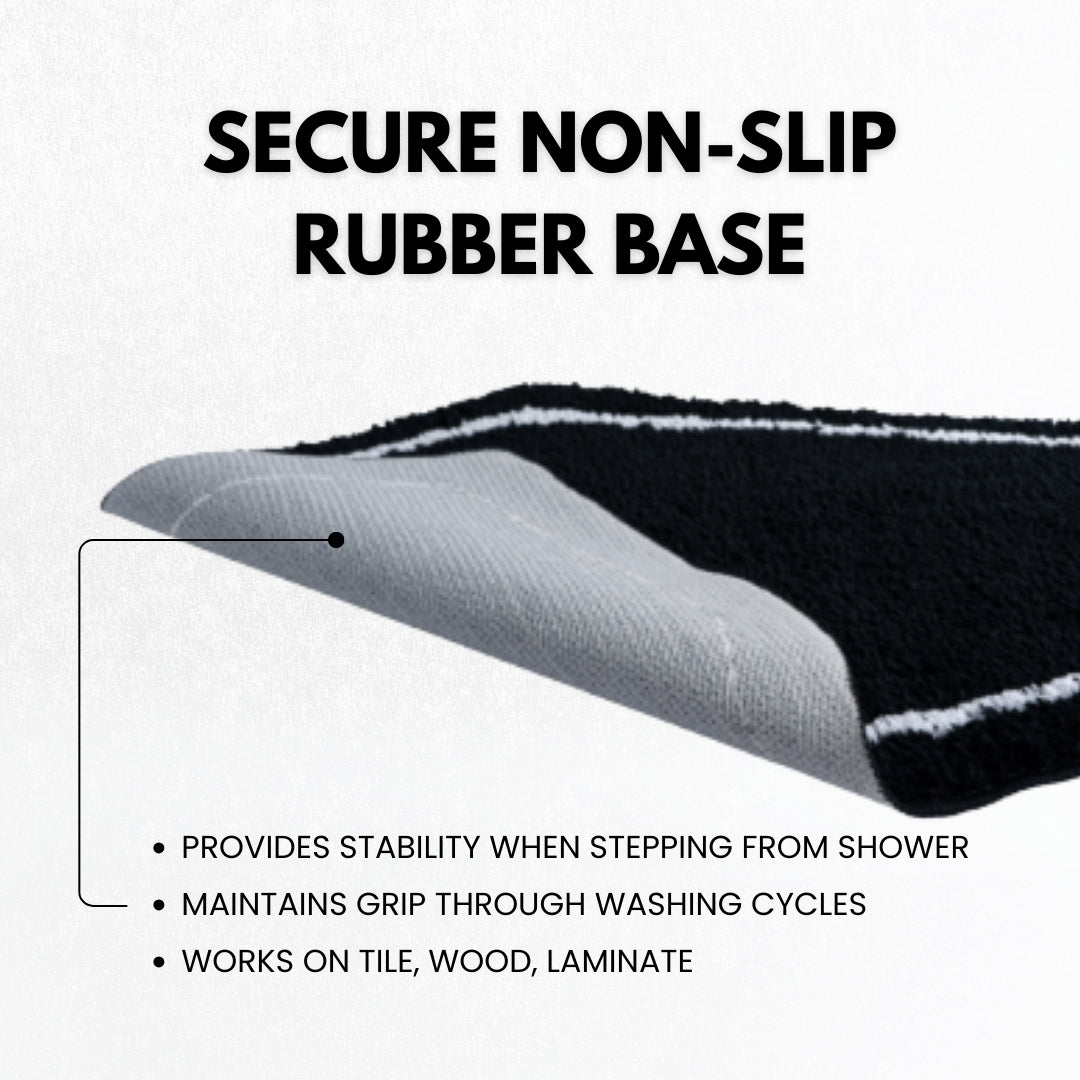 Non-slip rubber backing helps keep the mat securely in place on bathroom floors, tile, or hardwood surfaces. Provides added stability when stepping out of the shower while the absorbent microfiber surface soaks up moisture effectively.