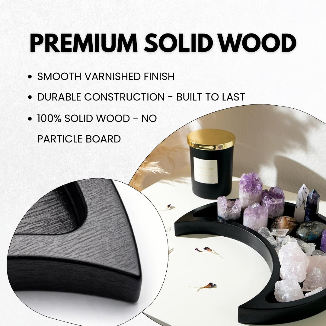 Ideal crystal holder for stones, minerals, and healing crystals. The gothic moon design creates an elegant display while keeping your collection organized with room for both large and small pieces.