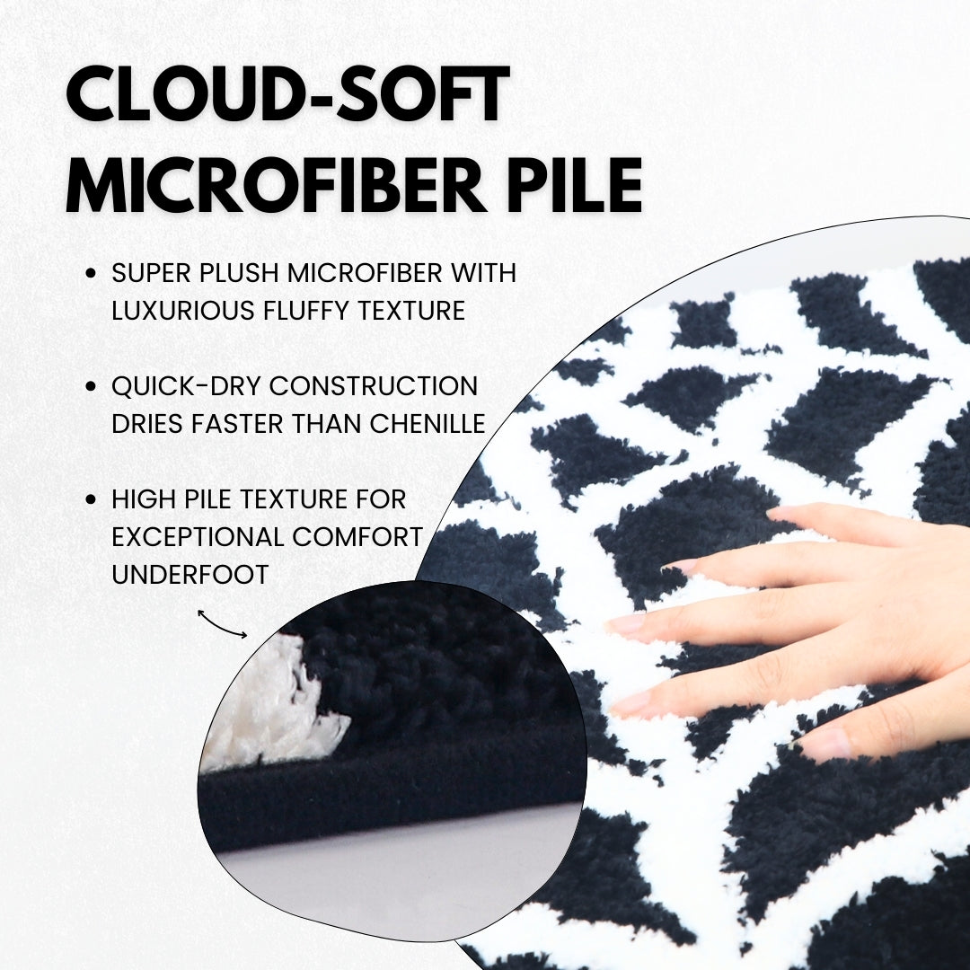 Super plush microfiber pile provides cloud-like softness underfoot after showers or baths. Quick-dry construction outperforms traditional chenille mats, keeping your rug fresh and ready faster while delivering exceptional cozy, fluffy texture.