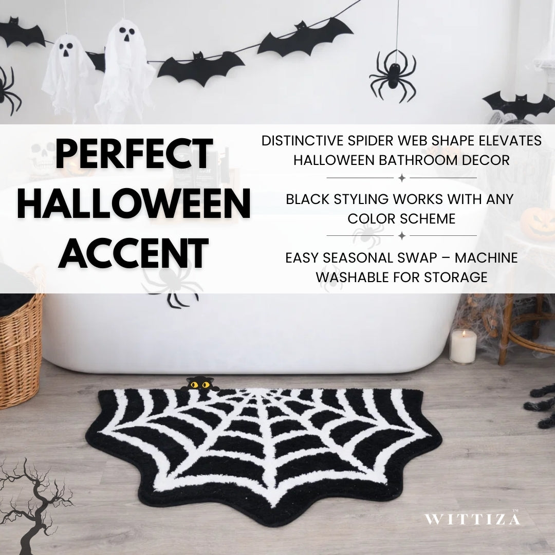 WITTIZA Spider Web Bath Mat Halloween Rug Gothic Spider Rug
